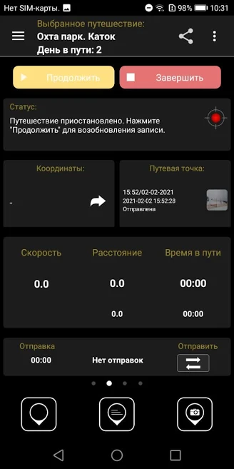 - Кнопки «Начать путешествие», «Приостановить», «Завершить». С помощью этих кнопок вы можете запустить, приостановить либо завершить запись путешествия.