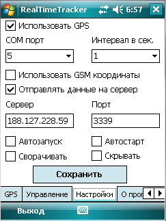 Эмулятор аппаратного трекера для передачи GPS-координат в реальном режиме времени для Windows Mobile Версия beta