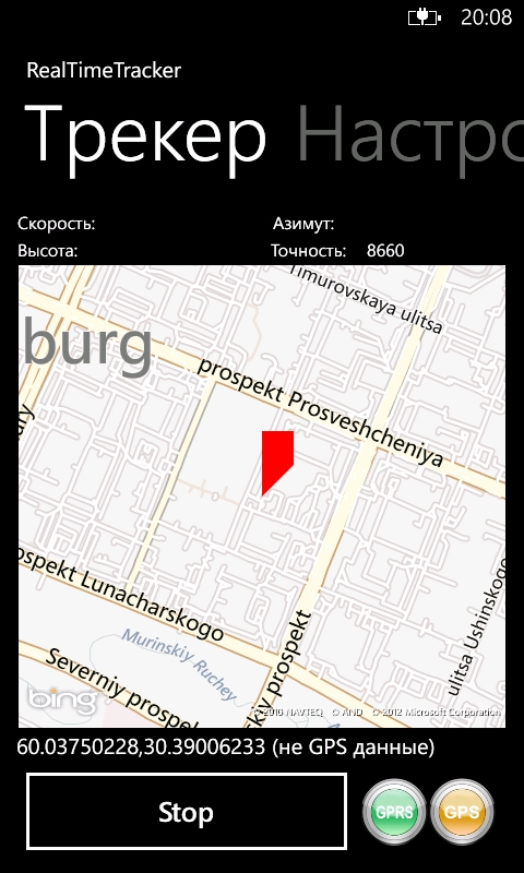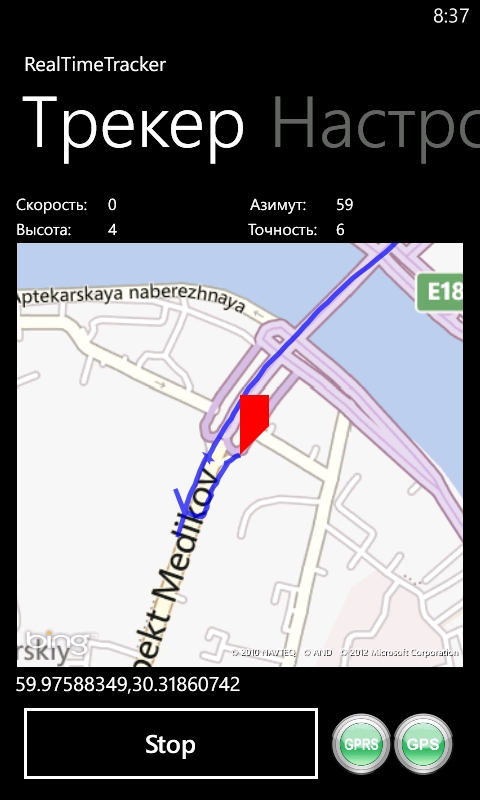 Эмулятор аппаратного трекера для передачи GPS-координат в реальном режиме времени для Windows Phone Версия 1.0