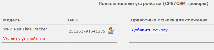 Где можно посмотреть результаты. Здесь, на сайте в меню "Мониторинг" (в выезжающей панели "Показать на карте"), вы увидите все свои подключенные аппаратные трекеры. Как подключить трекер. В личном кабинете, в меню "Мои трекеры" зарегистрируйте новый трекер. Для этого выберите модель трекера (для данной программы это "WP7-RealTimeTracker") и в качестве IMEI введите код из настроек программы (CODE). Смотрите пример: ![]() ![]() После того, как трекер подключен, он отобразится у вас в меню "Мониторинг" и будет доступен только вам. Если этого достаточно, то больше ничего делать не нужно. Однако, часто требуется просмотр трекера не только вами, но и другими людьми, которые могут быть не зарегистрированы на livegpstracks.com. Наиболее просто это делается с помощью приватных ссылок, которые легко отправить нужному человеку любым удобным вам способом. Для каждого трекера можно сгенерировать любое количество уникальных ссылок, задать описание и время действия каждой из них. Пример создания такой ссылки в картинках: ![]() ![]() В данном примере мы создали ссылку для Васи, подписали, чтобы не забыть для каких целей мы создали эту ссылку и задали период отображения ссылки. Отдельно стоит рассказать о "Периоде отображения". Это тот период, за который можно просматривать данные по этой ссылке. В данном примере это интервал с 4-го по 15-е мая. Человек, получивший эту ссылку может просматривать данные до тех пор, пока вы не удалите эту ссылку, но данные будут показываться только за указанный период времени. Созданные ссылки можно редактировать и удалять. Если вам чего-либо не хватает в программе, если вы заметили ошибки - пишите. Наш E-Mail support@livegpstracks.com |