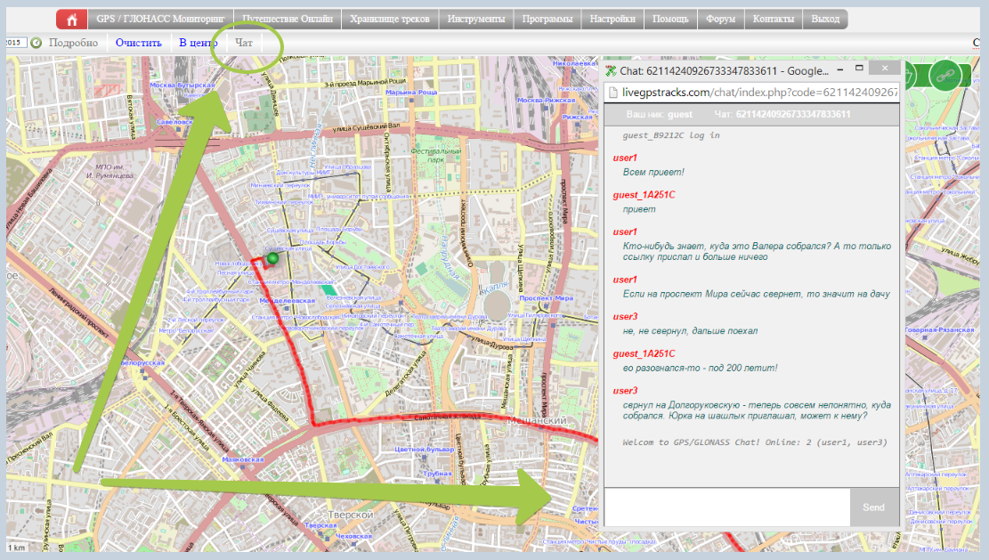 - Вы поехали в путешествие, создали временную ссылку и разослали ее своим друзьям (или разместили на форуме), чтобы они могли наблюдать за вами. С чатом всем будет удобнее и веселее.