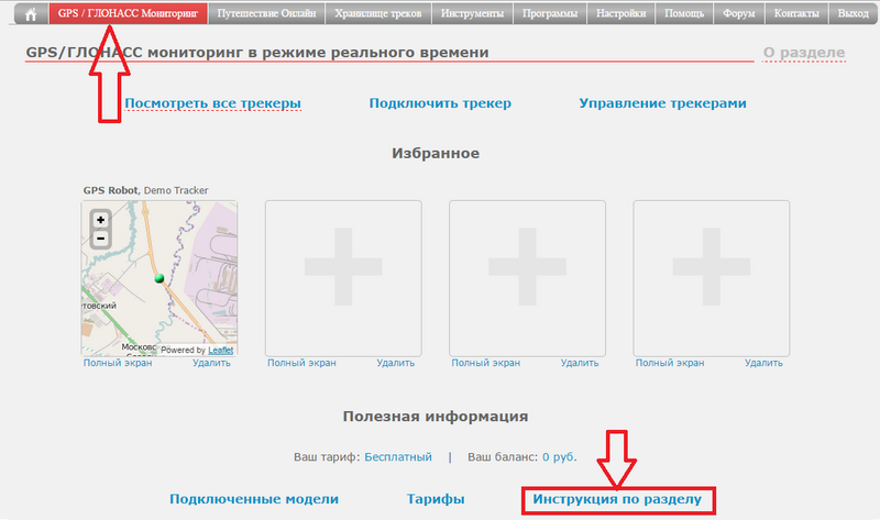 Напоминаем, что найти ссылку на инструкцию можно на информационной странице раздела "GPS/ГЛОНАСС Мониторинг".
