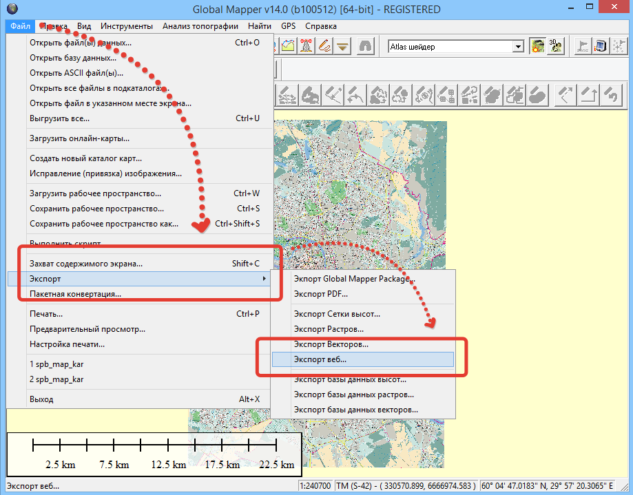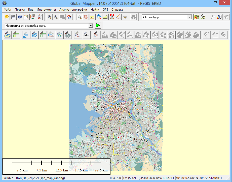 В Global Mapper открываем карту OziExplorer. Для примера будем использовать карту Санкт-Петербурга.