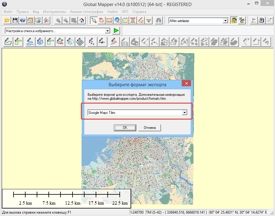 (в других версиях Global Mapper может называться немного иначе, но суть та же)