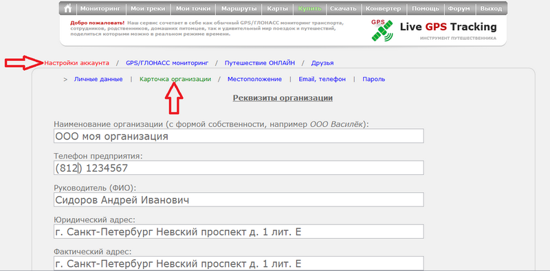 Карточка организации нужна для выписки счетов на оплату услуг GPS/ГЛОНАСС мониторинга.