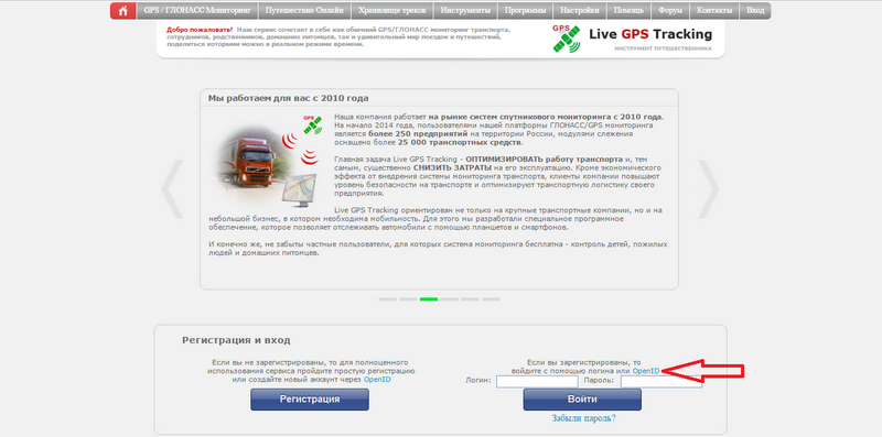 Перейдите на главную страницу сайта https://livegpstracks.com.