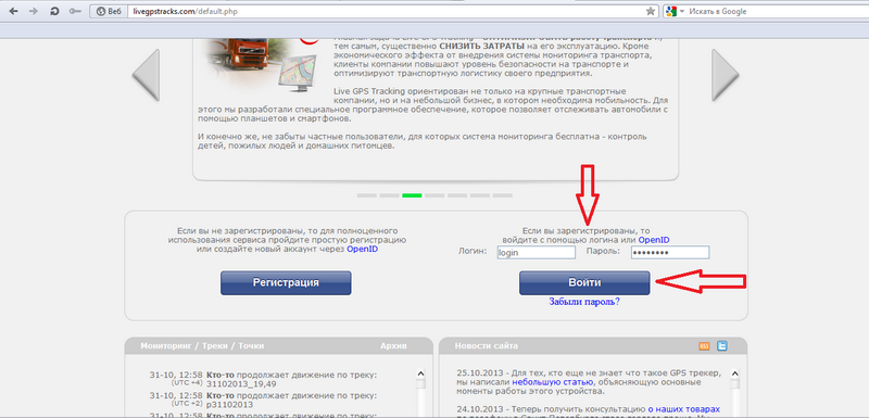 Действия на сайте livegpstracks.com