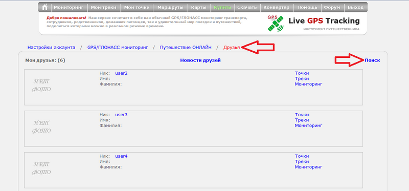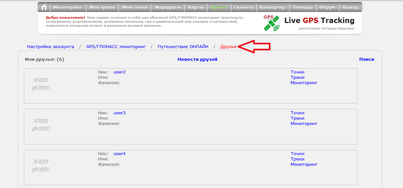 В разделе GPS/ГЛОНАСС Мониторинга вы сможете открыть друзьям доступ к своим трекерам. Или получить доступ к их.