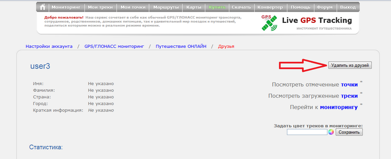 Нажмите кнопку "Удалить из друзей"
