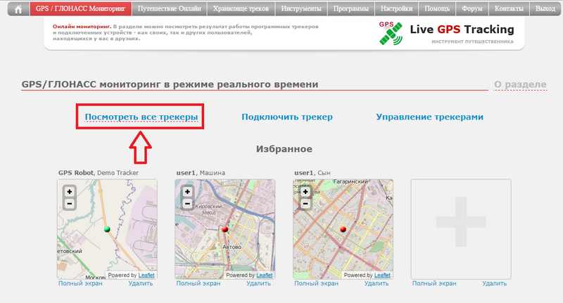 Зайдите в раздел "GPS/ГЛОНАСС Мониторинг" (верхнее меню сайта)