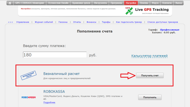 Нажмите кнопку "Получить готовый счет".