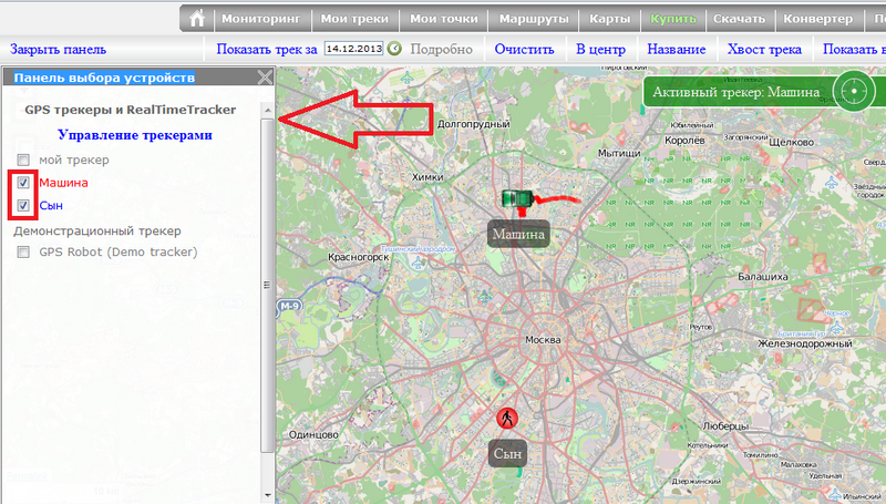Для этого в панели выбора устройств отметьте галками трекеры, которые вы хотите просматривать одновременно.
