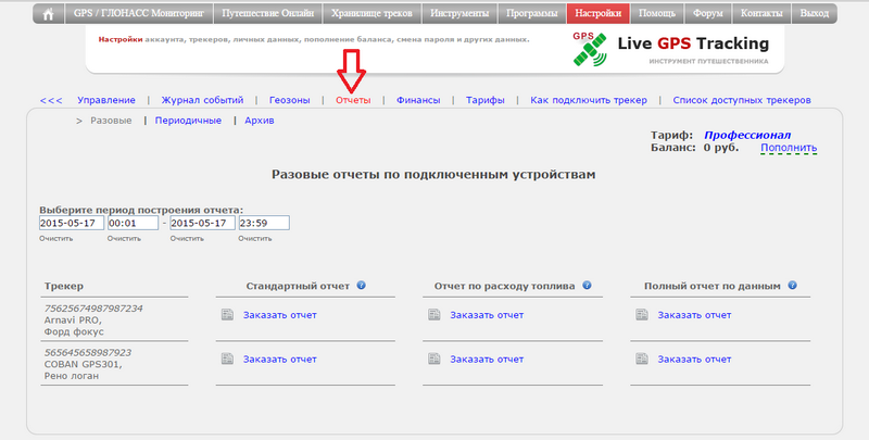 Перейдите в раздел GPS/ГЛОНАСС Мониторинг (пункт верхнего меню сайта).