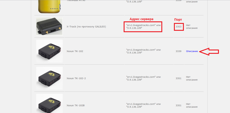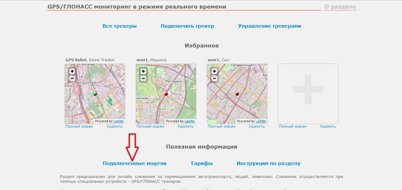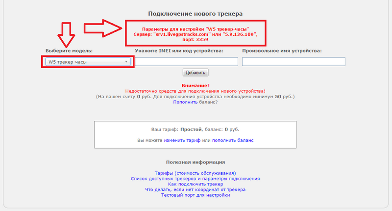 подключения трекеровВыберите нужную модель из списка. Над полями добавления трекера появится информация о настройке.