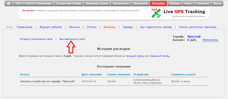 На странице финансов выберите подменю