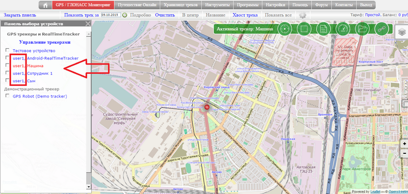 - Смотреть перемещение трекера в реальном режиме времени