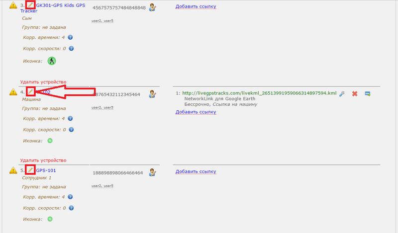 Рядом с названием модели у каждого трекера есть иконка "карандаш".
