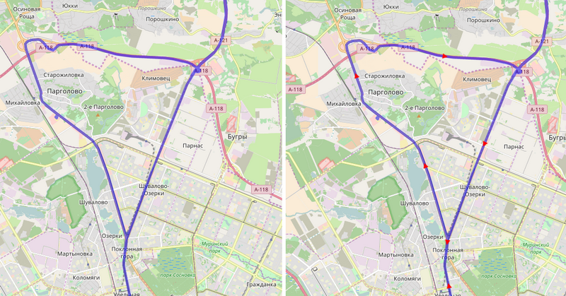 На скриншоте ниже показан один и тот же трек, только с учетом направления движения и без.