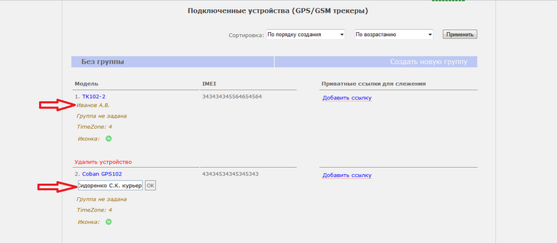 Изменить имя или задать можно и в списке устройств в "Управлении трекерами".