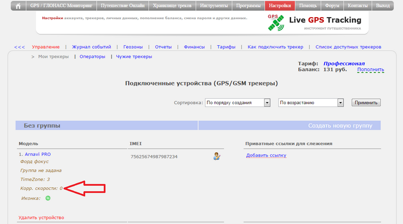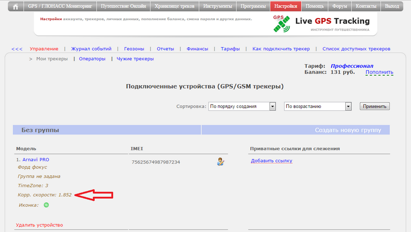 Выберите нужный трекер и найдите параметр "Корр. скорости"