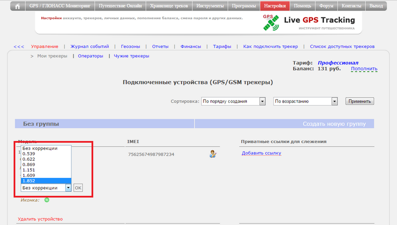 ВНИМАНИЕ! Данная настройка применима только для тех трекеров, у которых по протоколу скорость должна приходить в одних единицах, а в одной из прошивок приходит совершенно в иной.