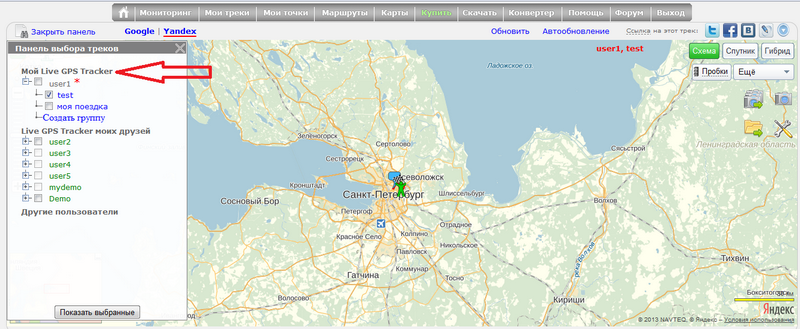 На панели первым пунктом идет "Мой Live GPS Tracker".