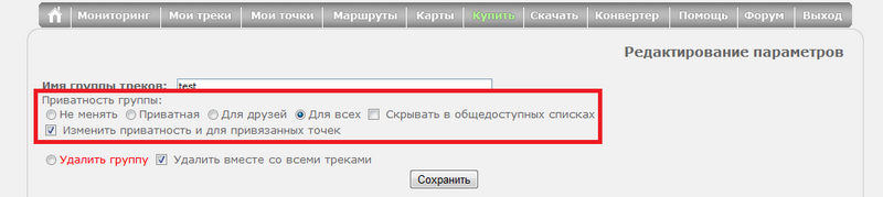 Изменить приватность и для привязанных точек - активируйте настройку и вместе с треком изменится приватность все привязанных к нему точек.