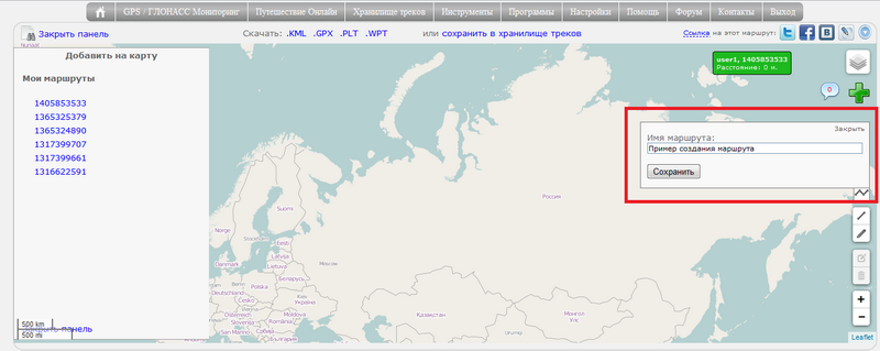 В левой панели в списке созданных маршрутов, он начнет отображаться под новым именем.