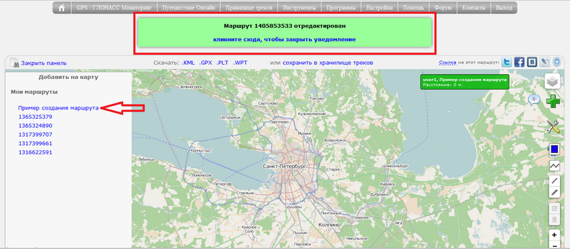 После сохранения появится уведомление о том, что маршрут отредактирован.