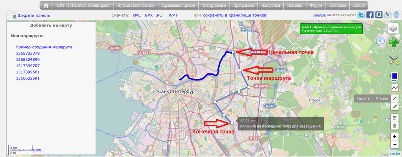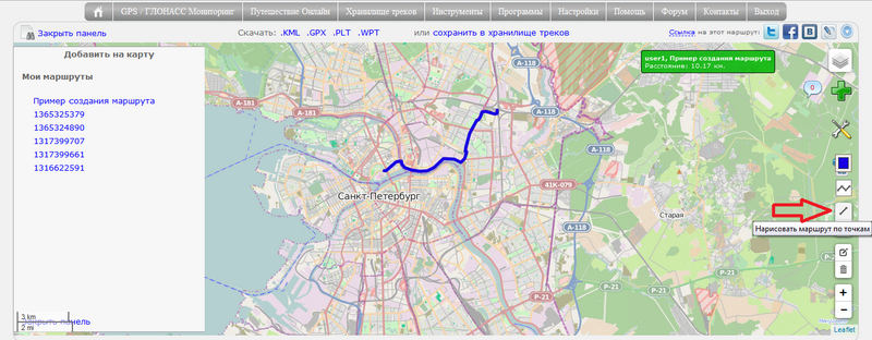 Стройте маршрут, перемещая курсор по карте и кликая в нужном месте для фиксации очередной точки.
