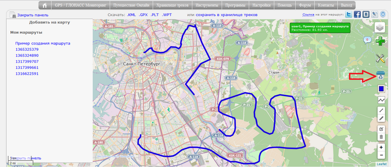 Найдите кнопку "Удалить маршрут" (при наведении мышью на кнопку появляется подсказка)