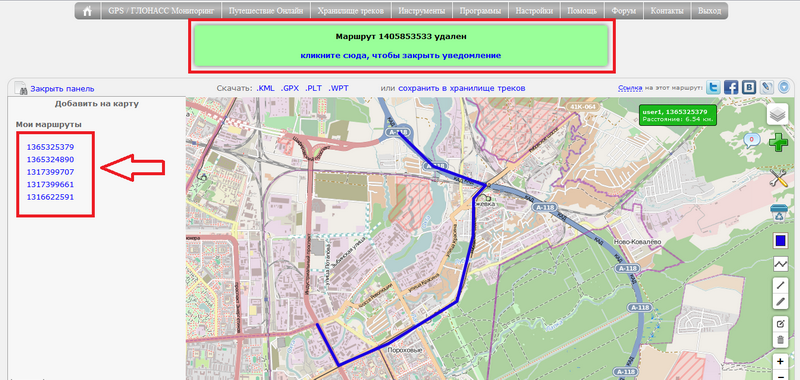 Маршрут исчезнет из левой панели со списком маршрутов.