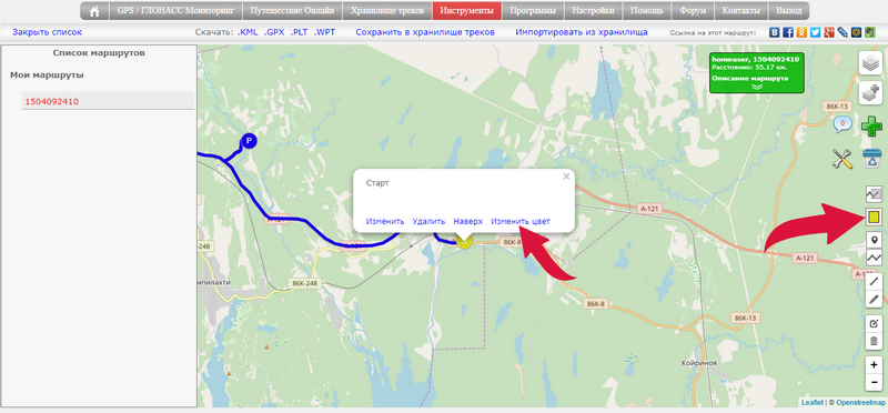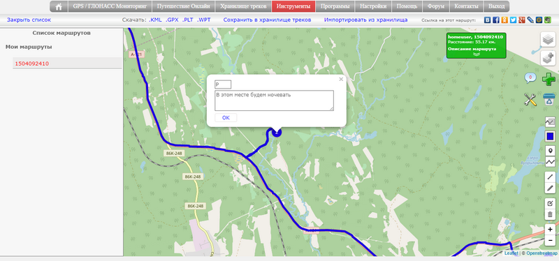 Для того, чтобы отметить на маршруте какие-то важные места, можно расставить специальные точки.