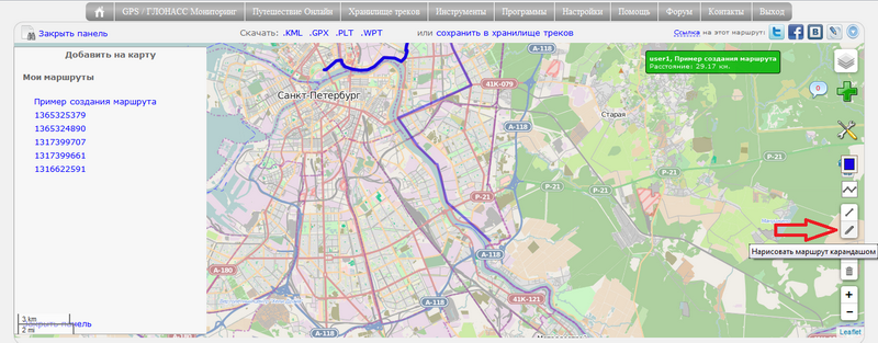 Найдите кнопку "Нарисовать маршрут карандашом" (при наведении мышью на кнопку появляется подсказка)