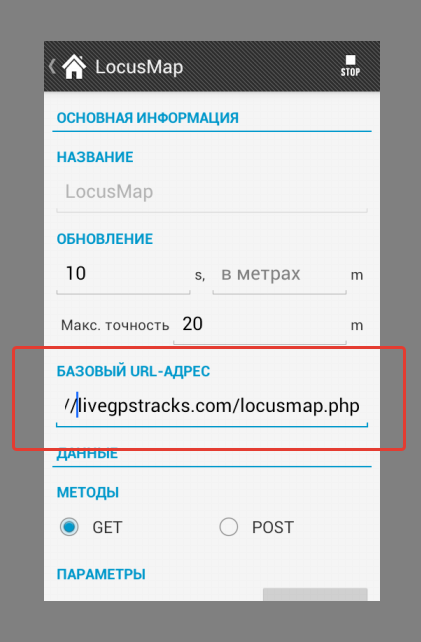 Подскажите пожалуйста, какие именно настройки должны быть в самой программе Locus(кроме адреса сайта)? не нашел таких данных.