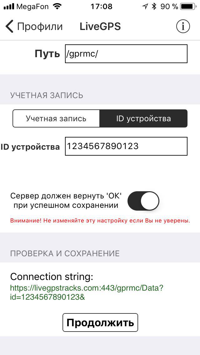 Обратите внимание, что ID (IMEI или произвольный) пишется без пробелов, только цифры и буквы латинского алфавита.