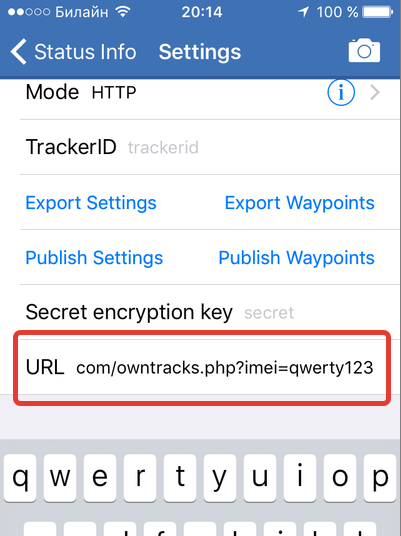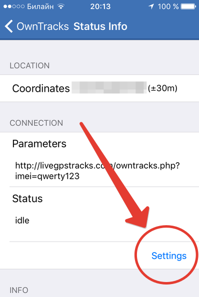 Settings - URL - http://livegpstracks.com/owntracks.php?imei=qwerty123