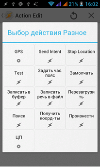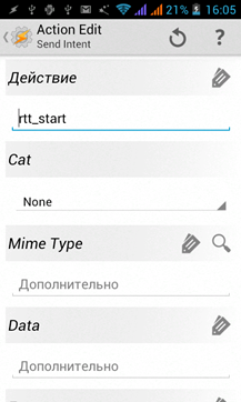 В следующем окне нажмите плюс и выберите категорию действий «Разное» и в ней «Send Intent»