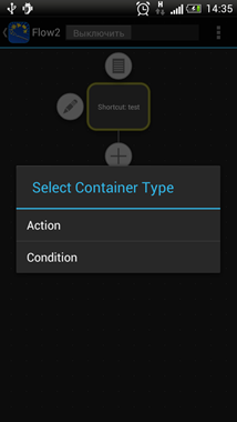 Добавляем действие (нажатие на плюс) и выбираем тип Action.