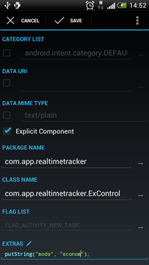 Как и в случае других интентов, в настройках сторонних приложений требуется указывать пакет нашего приложения (Package) и компонент, отвечающий за выполнение команд (Class).
