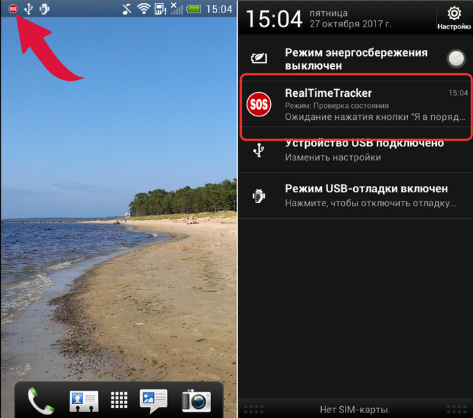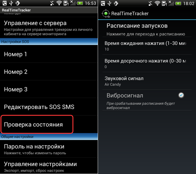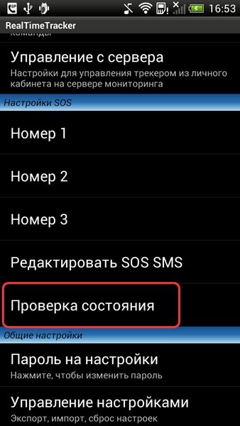 Для этого зайдите в настройки приложения - Подраздел "Настройки SOS" - "Проверка состояния"