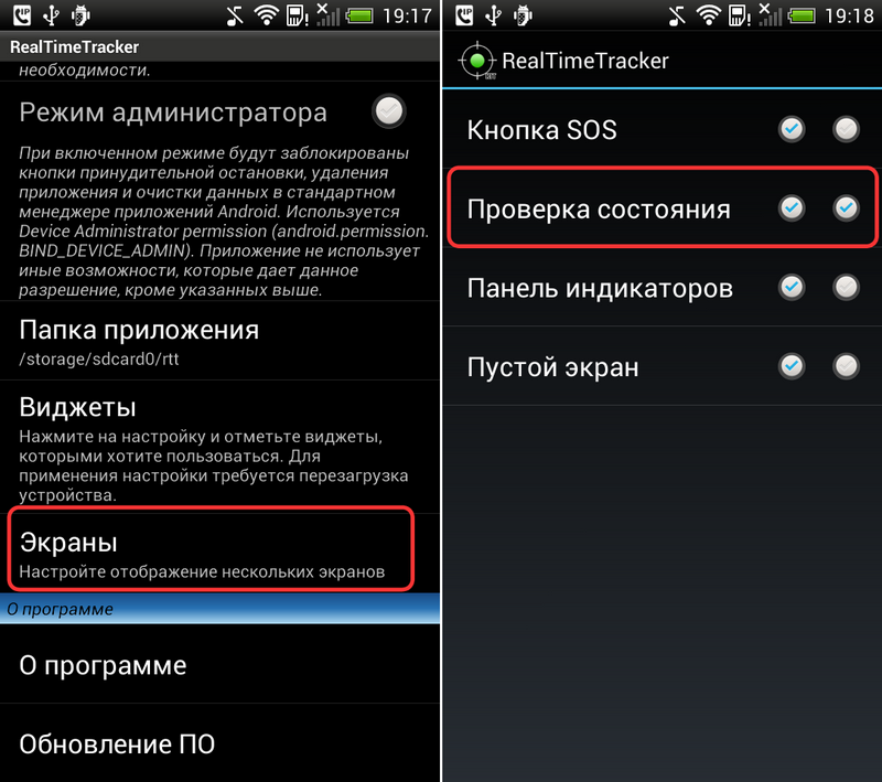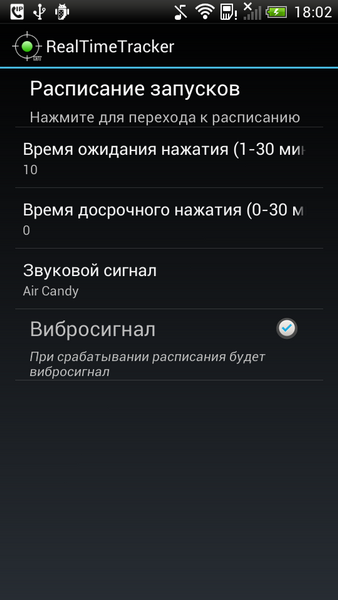 Настройки режима возможно найти через стандартные настройки приложения Real Time Tracker