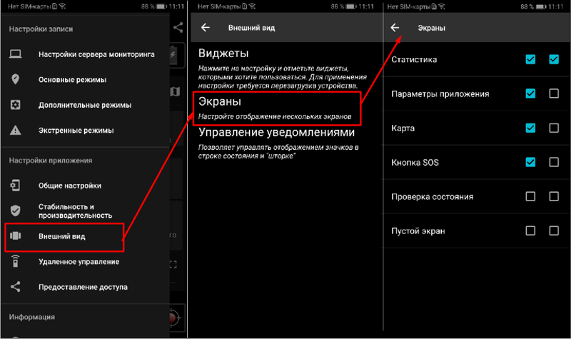 • Кнопка СОС - экран для экстренных случаев с отправкой уведомления о текущем местоположении