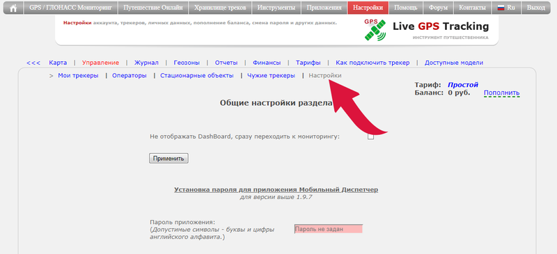 Зайдите в меню "GPS/ГЛОНАСС Мониторинг"