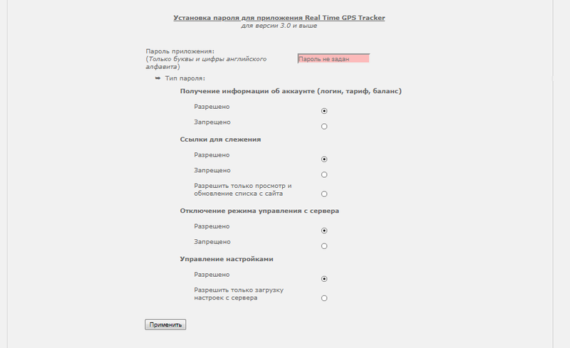 Прокрутите страницу вниз до заголовка "Установка пароля для приложения Real Time GPS Tracker"