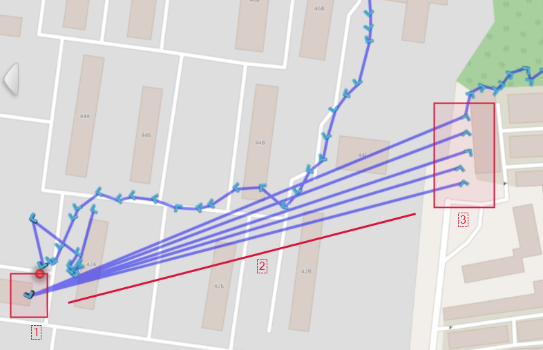 Кроме того, удалось понять причину периодически появляющегося веерообразного трека с вершиной в точке старта и концами лучей в точках первого корректного определения координат.