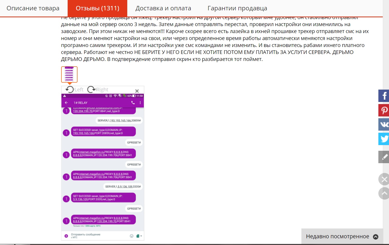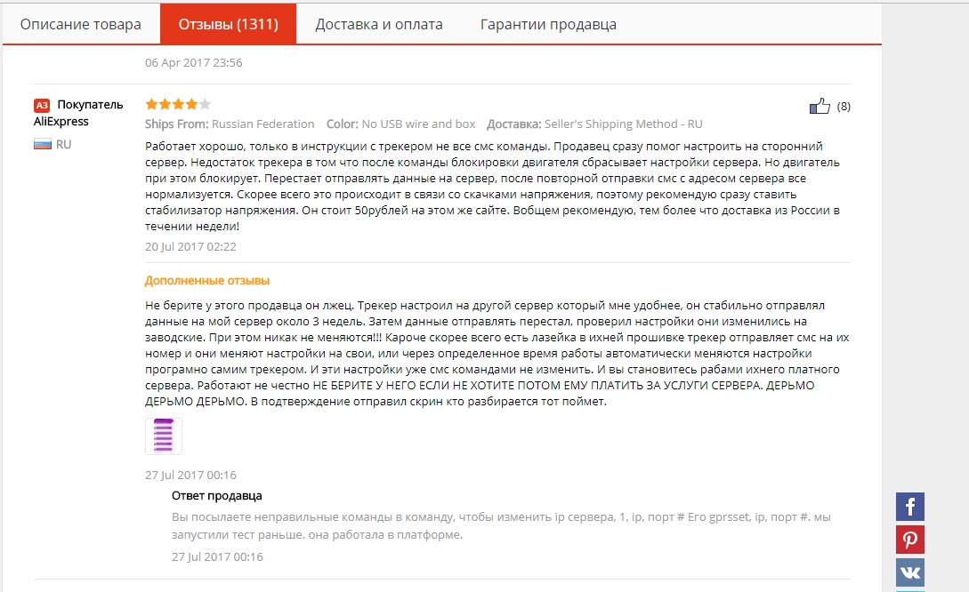 Отзывы об устройстве на странице продавца тоже настораживают: